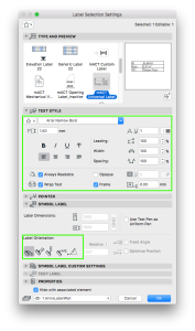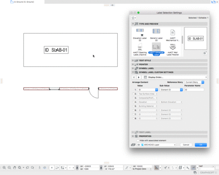 You place and configure the label against Archicad elements, choose which data rows to show within the object’s supported field set, adjust leader and arrow behaviour, and tune graphic representation using detailed, symbolic, individual, or model-view-driven modes as appropriate.